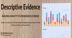 Welcome to this unit on descriptive evidence. The key goal of this unit is to help you become a better consumer of descriptive evidence by further developing your ability to use and interpret data. The central message is that, when used appropriately, data can be incredibly powerful to make better decisions and implement better policies.